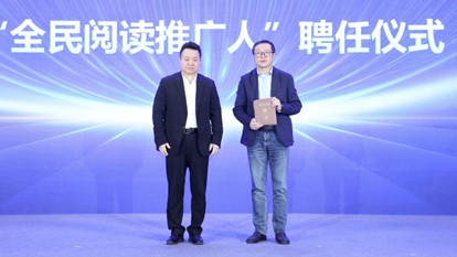 邱華棟為劉慈欣頒發(fā)“中國作協(xié)第二屆全民閱讀季”閱讀推廣人聘書