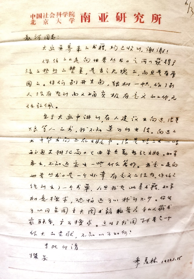 他是個(gè)平和的人,給人沒有高高在上的壓迫感,也沒有若即若離的距離感,無論是電話、書信還是見面,都能平等交流交心,就像鄉(xiāng)里鄉(xiāng)親、街坊鄰居交往一樣那么親切隨意。而他委實(shí)又是個(gè)真正的智者!他始終記得聞一多的詩句——“我的世界有更遼闊的邊境”。