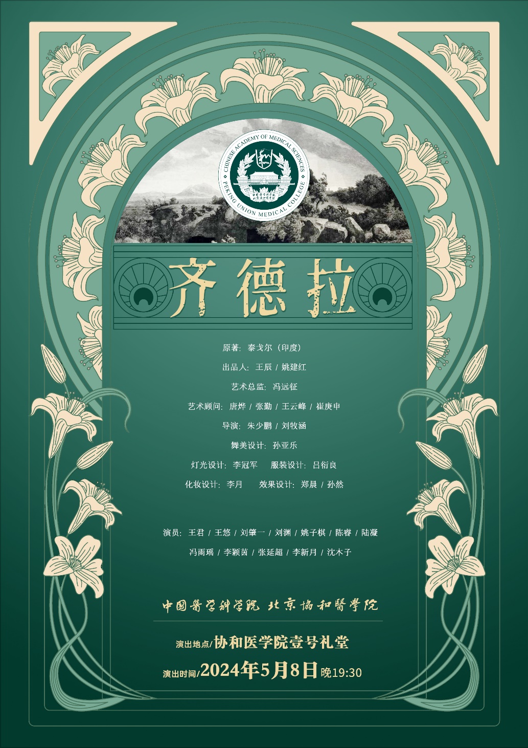 5月8日,由北京協(xié)和醫(yī)學院、北京人民藝術劇院共同創(chuàng)排的泰戈爾抒情詩劇《齊德拉》在北京協(xié)和醫(yī)學院壹號禮堂上演?!洱R德拉》是泰戈爾于1891年借用史詩《摩訶婆羅多》素材改編的詩劇,講述了曼尼普爾國公主齊德拉在春神與愛神的賜佑下獲得為期一年的絕世美貌,贏得了英雄阿順那的愛。此后她卻陷入虛假身份與真實自我的矛盾抉擇,靈魂備受拷問。劇終,她揭開面紗,向愛人顯露本貌并坦陳真相,阿順那深情接受了真實的她。1924年,泰戈爾訪華期間,為慶祝其64歲生日,由徐志摩、林徽因等新月社成員在協(xié)和禮堂主演了此劇,這也是《齊德拉》英文版首次在中國演出。100年后的今天,由北京人民藝術劇院院長馮遠征擔任藝術總監(jiān),朱少鵬、劉牧涵導演,北京協(xié)和醫(yī)學院學生再次演出這部經典劇目,具有重要意義。