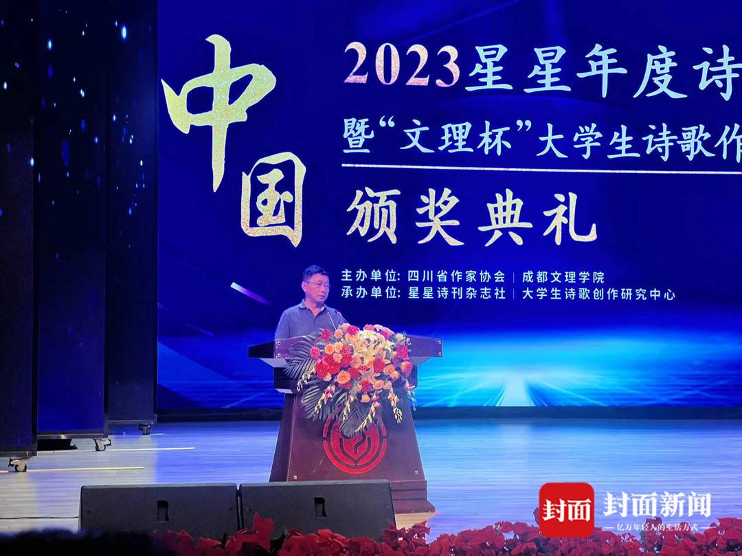 在萬物閃閃發(fā)光的初夏時(shí)節(jié),用詩歌連接此地與遠(yuǎn)方,最是恰切。5月16日下午,“2023·星星年度詩歌獎(jiǎng)”在成都文理學(xué)院頒出,“年度詩人獎(jiǎng)”“年度詩評家獎(jiǎng)”“年度大學(xué)生詩人獎(jiǎng)”分別由周所同、張?zhí)抑?、伯竑橋獲得。三位獲獎(jiǎng)?wù)咧?,既有多年默默耕耘的資深詩人,也有詩歌理論研究的中堅(jiān)力量,還有詩壇的新銳青年。三位獲獎(jiǎng)?wù)邅淼浆F(xiàn)場上臺(tái)領(lǐng)獎(jiǎng)并分別發(fā)表獲獎(jiǎng)感言。
