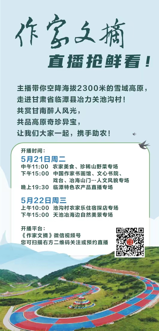 為響應中國作家協(xié)會定點幫扶工作號召,中國作家出版集團所屬文學出版單位與社會愛心力量組成慰問幫扶小分隊,將于5月21日-5月22日在甘肅臨潭開展“文學助力鄉(xiāng)村振興·臨潭行”活動。