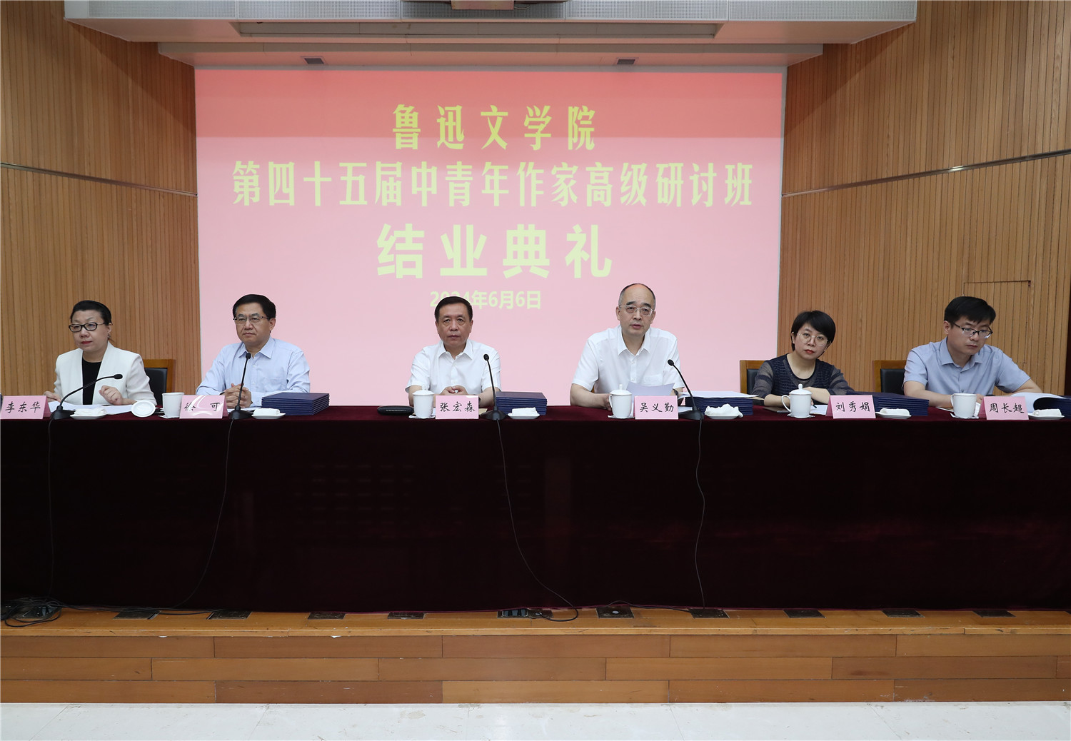 6月6日,魯迅文學(xué)院第四十五屆中青年作家高級(jí)研討班結(jié)業(yè)典禮在京舉行。來(lái)自全國(guó)各地的學(xué)員們圓滿完成為期3個(gè)月的學(xué)習(xí)研修任務(wù),順利結(jié)業(yè)。中國(guó)作協(xié)黨組書記、副主席張宏森,中國(guó)作協(xié)黨組成員、副主席、魯迅文學(xué)院院長(zhǎng)吳義勤出席結(jié)業(yè)典禮,并為學(xué)員們頒發(fā)結(jié)業(yè)證書。