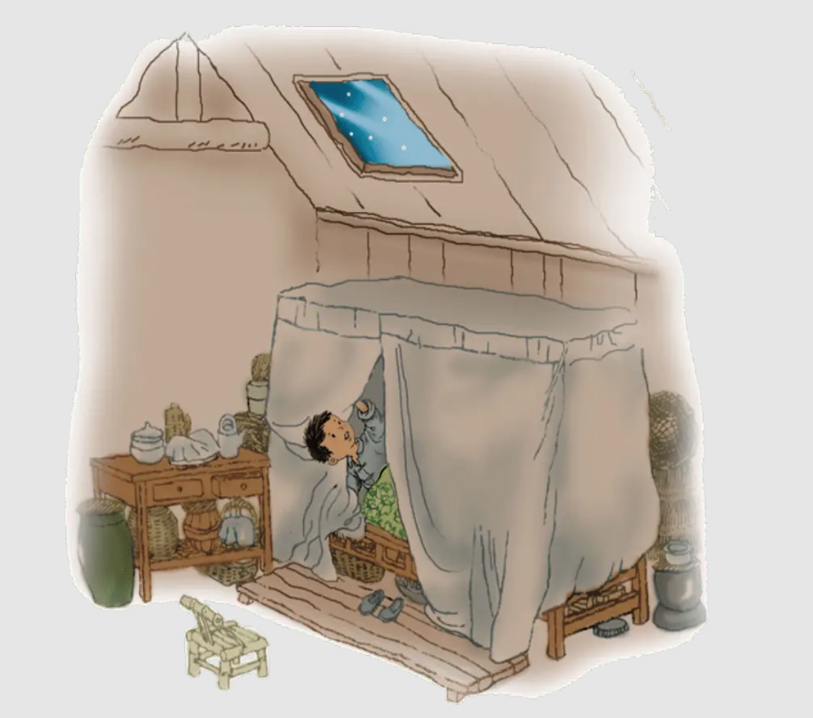細(xì)細(xì)讀下來,不由得讓人驚訝發(fā)現(xiàn),這是讓“天窗”成了孩子慰藉的兩個基本條件。雨天和黑暗,把孩子關(guān)閉在地洞的屋子里,是成人;為屋頂開出天窗,讓孩子透過小小的玻璃,放飛自己的想象,也是成人。套用一句話來說,老天爺關(guān)上了門,卻又打開了窗。于是從開始似乎把成人視為孩子的對立面讓他們掃興,到結(jié)尾對成人的感謝,就不僅僅是因為拘管了現(xiàn)實中的孩子,才讓孩子不得不把自己的興趣轉(zhuǎn)移,讓想象盡情發(fā)揮出來,而是也確實以物質(zhì)的構(gòu)建——天窗的“發(fā)明”,讓孩子的想象有了展開的基本依托,大人與孩子的貌似對立在文章最后就和解了。這種和解,不妨理解為,寫作者的成人共情孩子立場時,又折返回來,對成人也有一份共情式的理解,讓孩子對成人不只是埋怨,也有一份感謝。