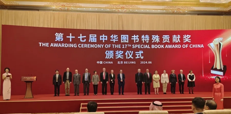 6月18日,第十七屆中華圖書特殊貢獻獎頒獎儀式在京舉行。本屆頒獎活動共表彰12個國家的15位獲獎?wù)?,包?位翻譯家、4位出版家和5位作家。