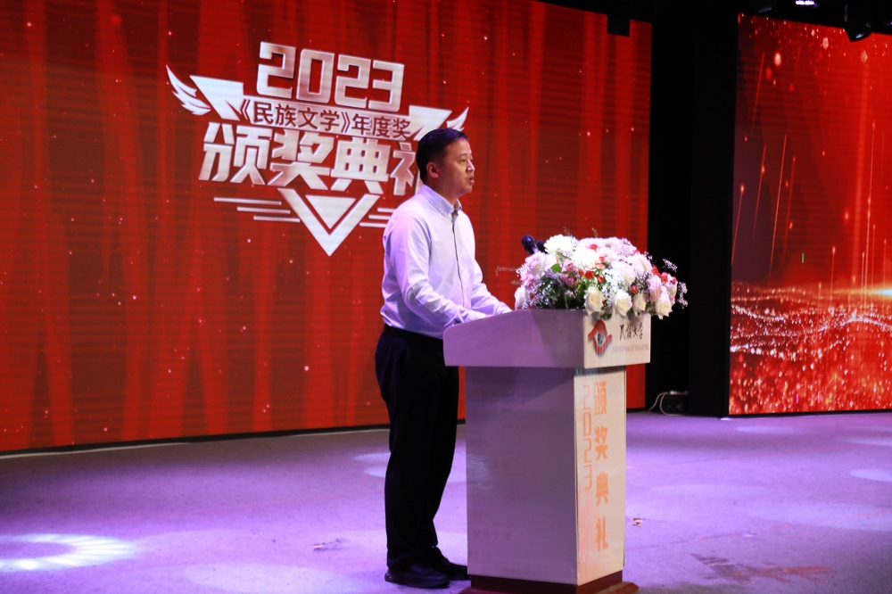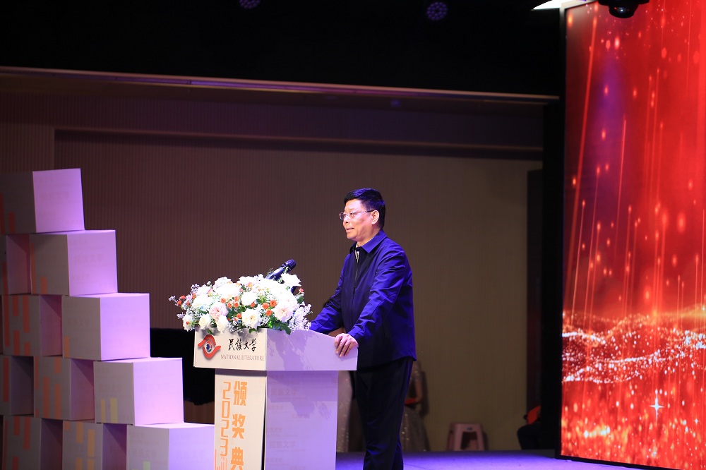 李一鳴在講話中指出,作為國家級民族文學期刊,《民族文學》創(chuàng)刊43年來,培養(yǎng)壯大民族作家隊伍,展現了多民族文學的豐沛活力和多彩光芒,為民族文學的繁榮發(fā)展作出重要而獨特的貢獻;《民族文學》年度獎設立十多年以來,推出了一大批具有民族風格、中華氣派、世界眼光、百姓情懷的優(yōu)秀作品,贏得了廣大作家和讀者朋友的信賴,逐漸成為一個具有公信力的、多民族作家心向往之的文學獎項。面對紛繁復雜的國際國內形勢,李一鳴希望《民族文學》雜志社堅定文化自信,發(fā)揮國刊優(yōu)勢,引領廣大少數民族作家深入貫徹落實習近平文化思想,積極探索民族優(yōu)秀傳統(tǒng)文化介入新時代社會生活的創(chuàng)新路徑,挖掘各民族共享的中華文化符號和中華民族形象,推舉新時代新作家,反映新時代新氣象,塑造新時代新人物,成就新時代新經典;希望各民族作家相互理解、相互學習,相互尊重,在潛移默化的相互影響中樹立對中華文化的深層次認同,凝聚實現中華民族偉大復興的強大精神力量,為推進中國式現代化注入文化動力。