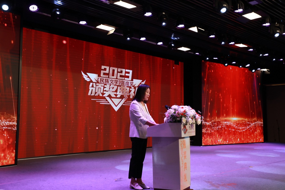 陳亞軍在致辭中談到,《民族文學》創(chuàng)刊四十多年來,始終秉持發(fā)展繁榮少數民族文學、團結少數民族作家、培養(yǎng)少數民族文學新人、促進民族團結進步的辦刊宗旨,以鑄牢中華民族共同體意識為主線,以構筑中華民族共有精神家園為己任,推出了大量優(yōu)秀作品,培養(yǎng)了大量創(chuàng)作人才,相當一批少數民族文學名家大家從《民族文學》起步,走向全國乃至世界。她祝愿作家們以此次獲獎為新的起點、新的動力和新的激勵,以新視野、新境界,以超越的雄心、突破的勇氣和創(chuàng)新的手法,用情用力講好中國故事,描繪新時代城鄉(xiāng)崛起、山鄉(xiāng)巨變尤其是各族人民的嶄新精神風貌,向世界展現可信、可愛、可敬的中國形象,為實現中國式現代化貢獻少數民族文學力量。