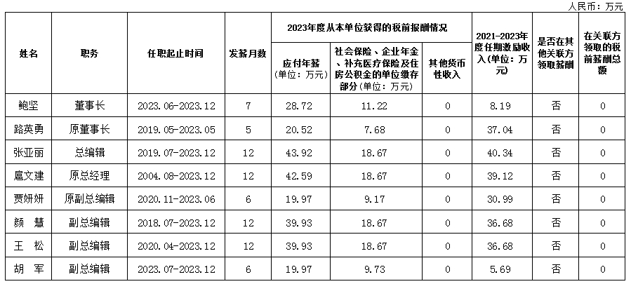 作家出版社有限公司企業(yè)負責人2023年度薪酬情況