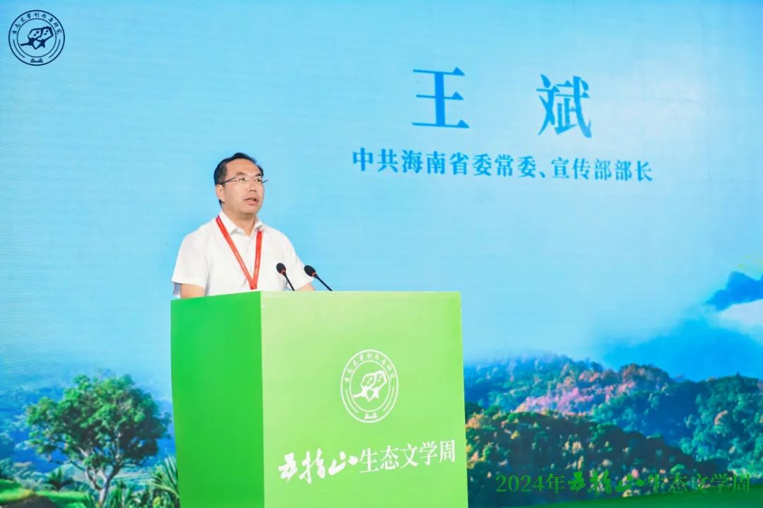2024年8月15日是我國第二個“全國生態(tài)日”。當天,由中國作家協(xié)會、海南省委宣傳部指導,中國作協(xié)社聯(lián)部、生態(tài)環(huán)境部宣傳教育司、自然資源部宣傳教育中心、海南省作協(xié)、中共五指山市委、五指山市人民政府共同主辦的2024年五指山“生態(tài)文學周”開幕。中國作協(xié)黨組成員、副主席、書記處書記邱華棟,中共海南省委常委、宣傳部部長王斌出席活動并講話。中國作協(xié)社聯(lián)部主任李曉東,生態(tài)環(huán)境部宣教司司長裴曉菲,自然資源部宣教中心黨委書記、副主任李航,中共五指山市委書記朱宏凌等出席活動。中國作協(xié)副主席張煒作書面致辭。張平、韓少功、老藤、王干、李舫、穆濤、朱輝、李元勝等知名作家、學者,以及海南省內(nèi)作家近200人齊聚于此,共話美麗中國建設。開幕式由海南省作協(xié)主席、天涯雜志社社長梅國云主持。