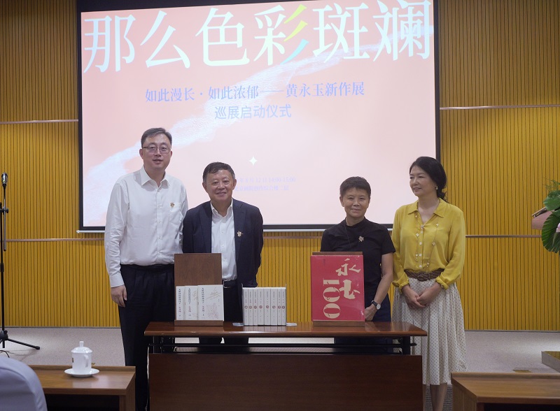 8月12日“如此漫長(zhǎng)·如此濃郁——黃永玉新作展”巡展啟動(dòng)儀式在北京畫院舉辦。北京畫院院長(zhǎng)吳洪亮、黃永玉家屬代表黃黑蠻、榮寶齋原副總經(jīng)理雷振芳、中國國家博物館原副館長(zhǎng)陳履生、作家出版社總編輯張亞麗,以及湖南美術(shù)館、成都市美術(shù)館、揚(yáng)州中國大運(yùn)河博物館、上海世博會(huì)博物館、蘇州博物館、廣東美術(shù)館等巡展單位代表出席活動(dòng)。