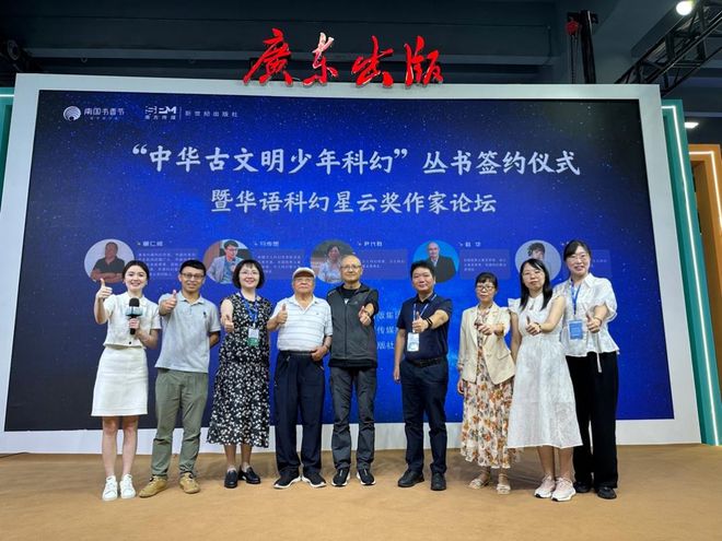 8月17日, 2024南國(guó)書(shū)香節(jié)主會(huì)場(chǎng)還舉辦了“中華古文明少年科幻”叢書(shū)簽約儀式暨華語(yǔ)科幻星云獎(jiǎng)作家論壇。華語(yǔ)科幻星云獎(jiǎng)與少兒科幻星云獎(jiǎng)創(chuàng)始人董仁威,新世紀(jì)出版社社長(zhǎng)陳少波、副總編輯秦文劍,少兒科幻作家趙華、馬傳思、尹代群、路航等與會(huì)。