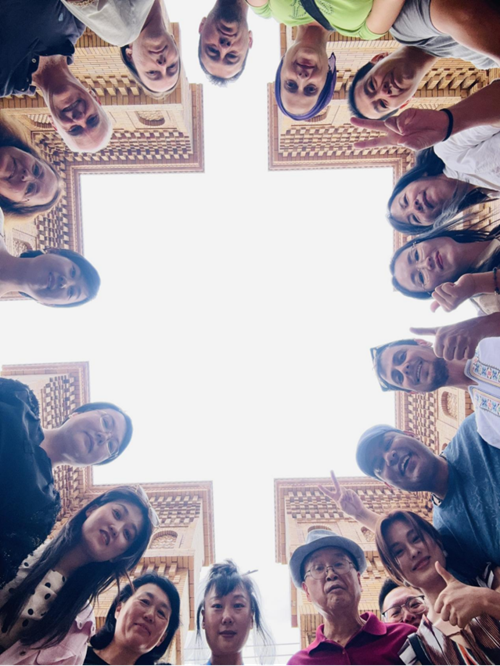 吐魯番阿凡提風情園前的合影。(攝影:汪金波)