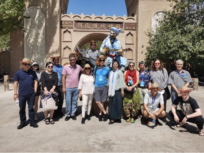 從古代絲綢之路到如今的“一帶一路”,新疆作為人類文明匯聚之地,擁有絕佳的自然景觀與悠久的人文歷史,難怪英國歷史學家湯因比說,如果一個人有來生,我愿意出生在兩千年前的龜茲(今新疆庫車),那個多民族文化交匯的地方。在天高云淡、瓜果成熟的8月,空氣中氤氳著豐收的香甜氣息,各國漢學家、翻譯家和中國作家從新疆首府烏魯木齊出發(fā),途經(jīng)昌吉回族自治州、吐魯番市,到水草豐茂的伊犁哈薩克自治州,最后抵達中國最西部的喀什地區(qū)。大家仿佛將短短的8天時間過成了一個月的豐富程度,他們品味新疆人文歷史,飽覽新疆美景,品嘗新疆美食,感受新疆人民的熱情好客以及安居樂業(yè)、載歌載舞的幸福生活,各國翻譯家和中國作家彼此間暢通無阻的交流,達成一個個合作意向,成就一段段真摯友誼,也留下一幕幕美好瞬間。