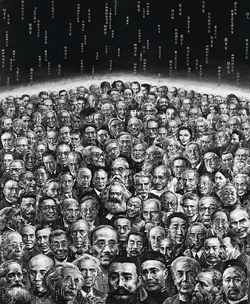 工作之余,馮遠(yuǎn)始終堅持以藝術(shù)家的責(zé)任感與使命感,對中國人物畫語言和范式創(chuàng)新進(jìn)行探索與實踐?!蹲迫铡防锱溆写罅狂T遠(yuǎn)不同階段代表作,這些作品或崇仰前賢,或俯憫蒼生,向現(xiàn)實的廣度和歷史的縱深、向精神的高度和人性的深處拓展。翻閱這些圖片,能感受到作品兼具感性與學(xué)理雙重表達(dá),坦蕩深沉、大氣磅礴。他筆下的人物造型謹(jǐn)嚴(yán)傳神,筆墨蒼澀遒勁通透老辣,線條簡潔渾厚舒暢有力,呈現(xiàn)出深邃的思想內(nèi)涵、深遠(yuǎn)的歷史視野和悲憫的人文關(guān)懷。透過這些畫作,更能看到隨著人生閱歷的積淀與豐厚,他的人物畫筆墨和意趣都漸入一種“從心所欲不逾矩”的佳境,給觀者感人至深的視覺震撼與回味。殊為珍貴的是,書中還有大量他對創(chuàng)作、對藝術(shù)的體悟與感受,尤其對自己作品立意的闡釋,對了解馮遠(yuǎn)及藝術(shù)研究無疑具有極大價值。