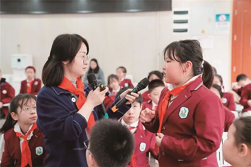 2024年3月14日,受陜西省委宣傳部、陜西省作家協(xié)會(huì)邀請(qǐng),劉芳芳(左)在西安碑林區(qū)建國路小學(xué)進(jìn)行科普科幻公益講座。作者供圖