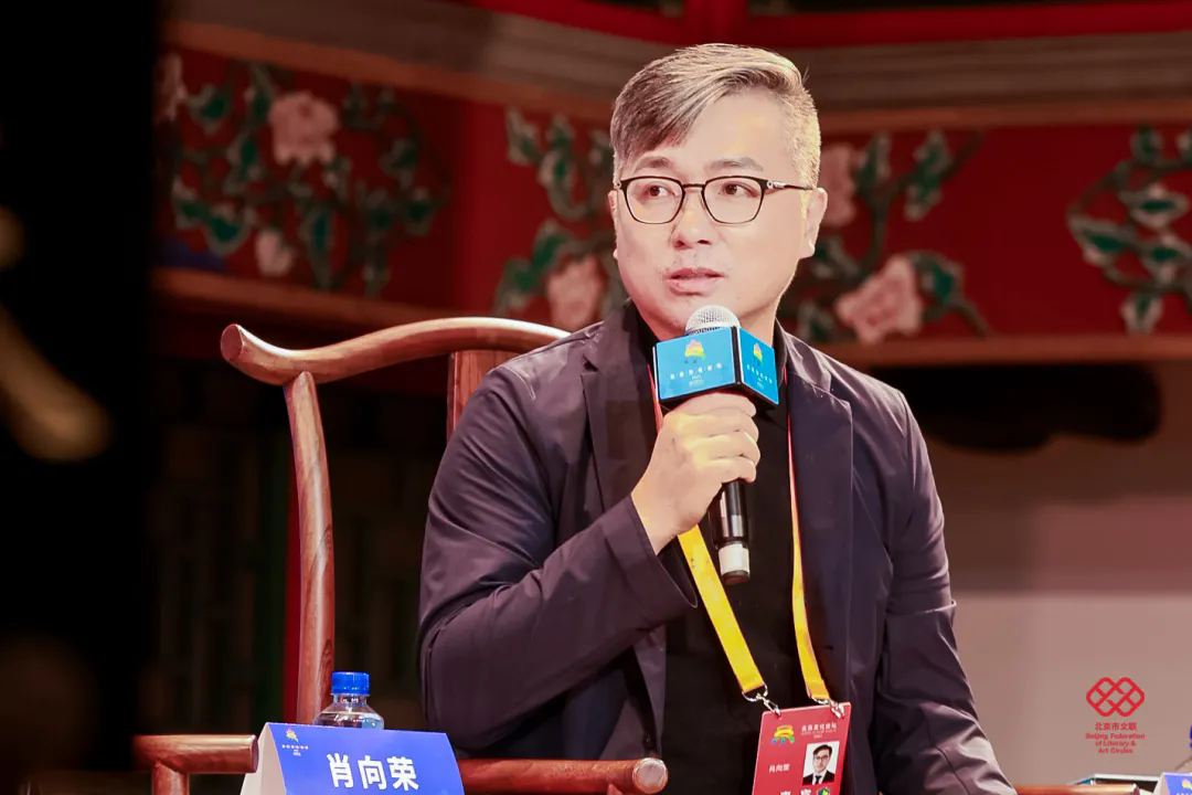 郝戎在最后總結(jié)中說,任何一門舞臺藝術(shù)創(chuàng)作觀念的更新都不是一成不變的,都是隨著社會的發(fā)展在與其他藝術(shù)形式不斷融合、互相借鑒中實現(xiàn)共生共融,在表現(xiàn)形式上也是打破了固有的圈層禁錮?!俺鋈εc破圈”是對雙創(chuàng)接地氣的詮釋,“出圈”是一個結(jié)果,“出圈”后火爆了,從某意義上來說,創(chuàng)新性發(fā)展了?!捌迫Α钡倪^程是藝術(shù)家和制作者在尊重藝術(shù)本體的基礎(chǔ)上,遵照藝術(shù)發(fā)展的規(guī)律,去相互借鑒、破圈、跨界、融合。技術(shù)在藝術(shù)創(chuàng)作環(huán)節(jié)當中不能喧賓奪主,永遠是作為藝術(shù)創(chuàng)作的輔助來出現(xiàn)。如果忽略了演員對人物形象的創(chuàng)造,就意味著它不是戲劇的本體。戲劇的核心是人,戲劇的對象也是人,要通過演員表演來塑造人物形象,揭示人物內(nèi)心豐富的精神世界。作為藝術(shù)工作者,要適應技術(shù)的飛速發(fā)展,與時俱進。