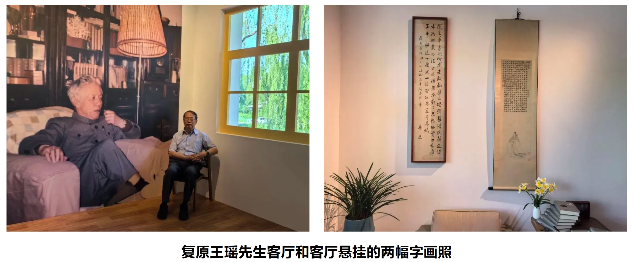 王瑤先生不是收藏家,客廳懸掛的陶淵明畫像和魯迅詩手跡都是復(fù)制品,我告訴策展人,應(yīng)不難找到原先的樣本,據(jù)此制作就行了。因為,文獻(xiàn)展不同于藝術(shù)展,其中的書畫作品都只是示意而已,目的是制造氛圍,起渲染與烘托作用。兩位策展人都告訴我,這個要求不難實現(xiàn)。