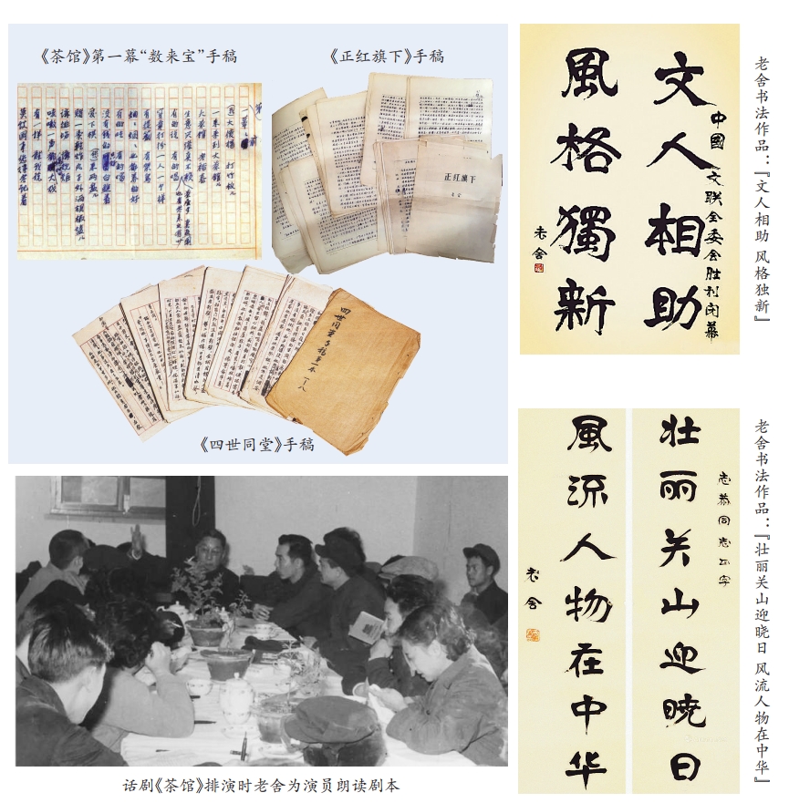 學術(shù)界曾對現(xiàn)代文學史上“魯郭茅巴老曹”的排位有過爭論,將老舍定位在文學大師或文學大家之列,毫無異議,只是在具體論述之中,常將“魯郭茅”置于博大高深,談及“巴老曹”則偏于特點和個性。作為偉大作家的“巴老曹”,當然也以文學的豐富與復雜垂范后世。1944年,邵力子、郭沫若、沈雁冰、陽翰笙、馮雪峰等發(fā)起紀念“老舍創(chuàng)作生活二十年”,在活動“緣起”里,說老舍的文學創(chuàng)作為“新文藝史上劃出了一個時代”,成為“新文藝的一座豐碑”“將與中國新文藝日益堂皇而永垂不朽”;還說老舍“無論在做人與做文上,都為我們創(chuàng)作出更多不朽的范本”,而使“新文藝愈加充實光輝”。今天重新讀到這些話,仍有莫名的感動和心動。老舍積極投身社會時代變革,以文學創(chuàng)作和文學教育活動等文學行為實現(xiàn)人生價值,展現(xiàn)出精神大境界和文學大格局。