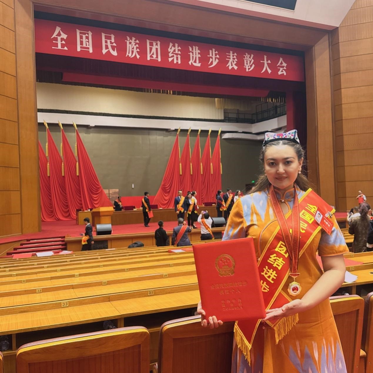 布買熱木汗·吾不力卡司木在全國民族團(tuán)結(jié)進(jìn)步表彰大會(huì)上