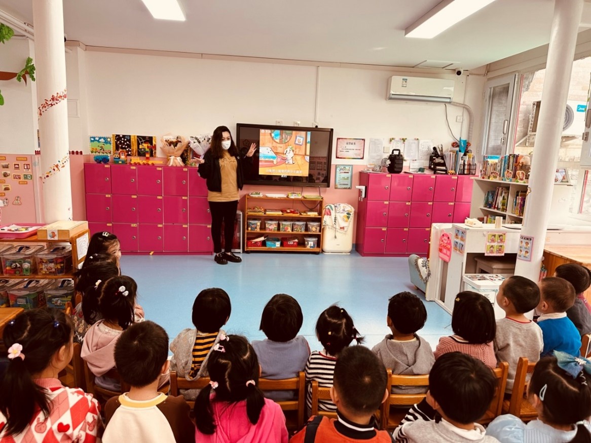 布買熱木汗·吾不力卡司木在中央民族大學(xué)幼兒園給孩子們講故事
