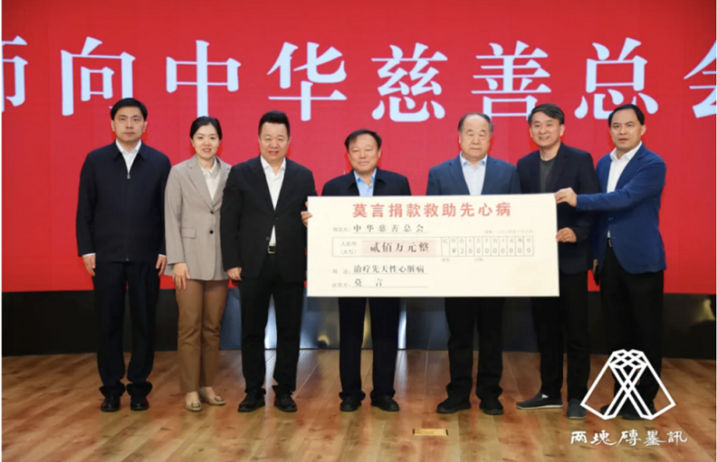 邱華棟主持儀式并致辭,他說,2022年1月,莫言在中華慈善總會設(shè)立救助先天性心臟病的公益項(xiàng)目“莫言同心”。自2014年開始,連同這次200萬,莫言已經(jīng)為先天性心臟病患兒捐贈救助款累計(jì)1130萬元人民幣,成功為來自新疆、西藏、重慶、四川、云南、甘肅、遼寧、湖北、山東、河北、內(nèi)蒙古等省、直轄市、自治區(qū)的405位先心病兒童成功完成手術(shù)。他表示,莫言十年捐款1100多萬元的公益行動讓人感動,他同時帶動了千千萬萬人伸出愛的雙手,幫助弱勢群體走出困境,這是中國作家的驕傲,為更多的人走向慈善起到了帶頭作用。