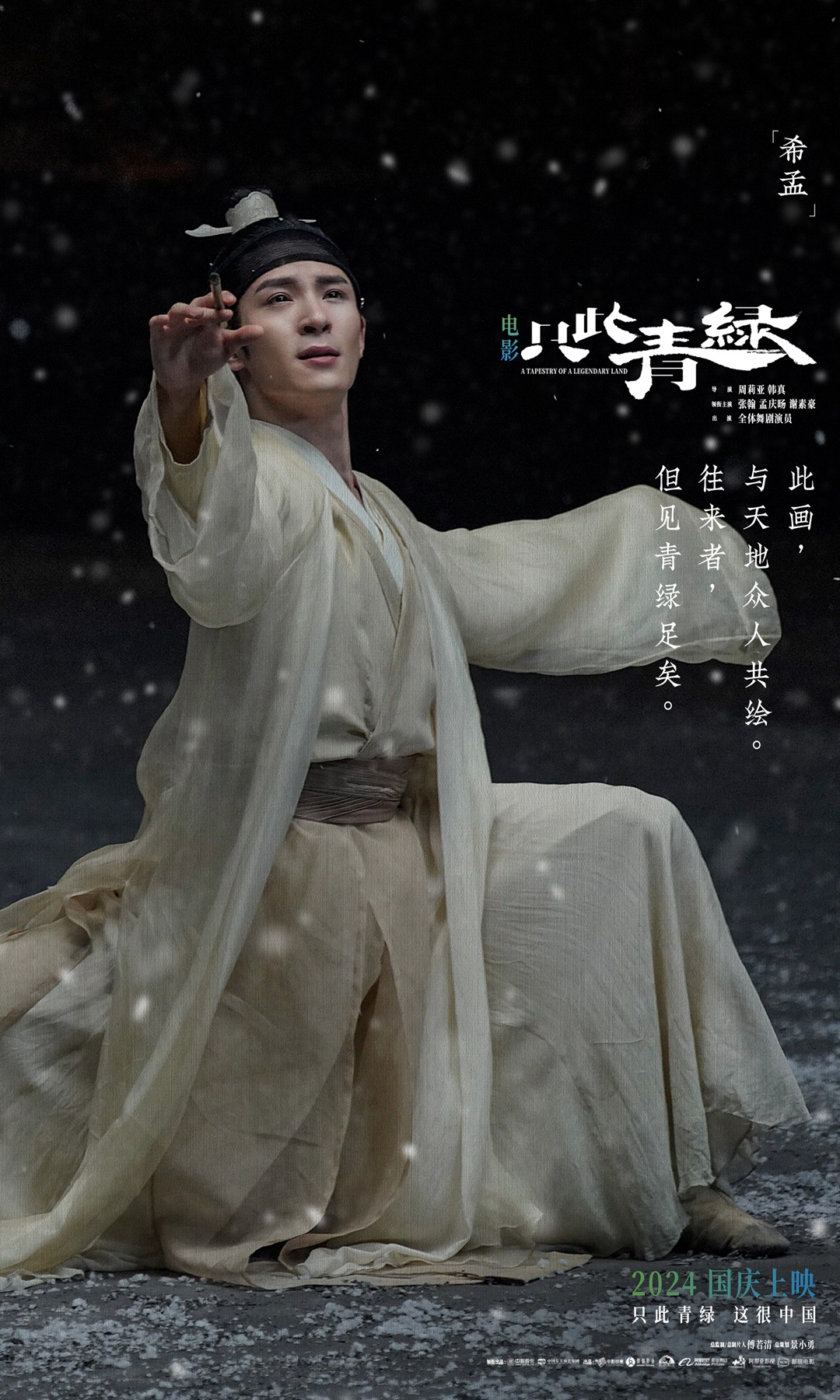 作為中國十大傳世名畫之一的《千里江山圖》,歷來以撲朔迷離的創(chuàng)作背景、巧奪天工的精湛畫功以及極高的藝術審美價值吸引著廣大藝術愛好者。不同于黑白色調的水墨畫,該畫因用石青石綠等礦物質顏料繪成而得名,絢麗的青綠色調交織描繪著千里江山的錦繡恢弘,被譽為“青綠山水畫之巔峰”?!吨淮饲嗑G》以此為題材,巧妙地設計了一個由現(xiàn)代社會穿越至宋朝的“展卷人”,他見證了畫師希孟從問篆、唱絲、尋石、制筆、淬墨、苦思直至入畫……目睹其嘔心瀝血、忘我創(chuàng)作,與無數(shù)勞動者攜手創(chuàng)作出傳世畫卷的歷程。