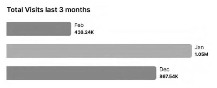 自2017年創(chuàng)立以來,元?dú)忾喿x社區(qū)一直呈現(xiàn)出穩(wěn)步發(fā)展的態(tài)勢。網(wǎng)站流量分析平臺蘇姆雷士(SEMrush)統(tǒng)計(jì)與分析的數(shù)據(jù)顯示,從截至2024年3月的有機(jī)搜索流量來看,元?dú)忾喿x社區(qū)的流量每月平均增長17.32%。[7]就具體訪問數(shù)量而言,蘇姆雷士于2024年3月公布了元?dú)忾喿x社區(qū)過去3個(gè)月的總訪問量(見圖1),即2023年12月的訪問量為86.754萬次,2024年1月、2月分別為105萬次、43.824萬次,3個(gè)月的訪問總量高達(dá)230多萬次。就用戶停留時(shí)長而言,數(shù)據(jù)顯示,2024年2月元?dú)忾喿x社區(qū)用戶平均持續(xù)使用時(shí)間為48分51秒。[8]以上數(shù)據(jù)表明,中國網(wǎng)文數(shù)字閱讀類產(chǎn)品目前在法國的傳播顯現(xiàn)出持續(xù)、高頻、穩(wěn)步提升的良好形勢。