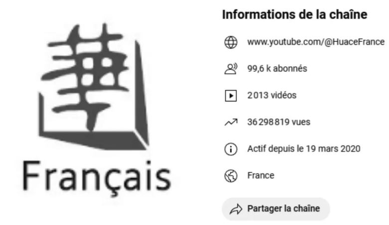 圖2 華策集團(tuán)在優(yōu)兔網(wǎng)法語頻道開設(shè)的官方賬戶截圖