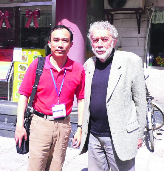 2005年,余中先(左)與羅伯-格里耶合影