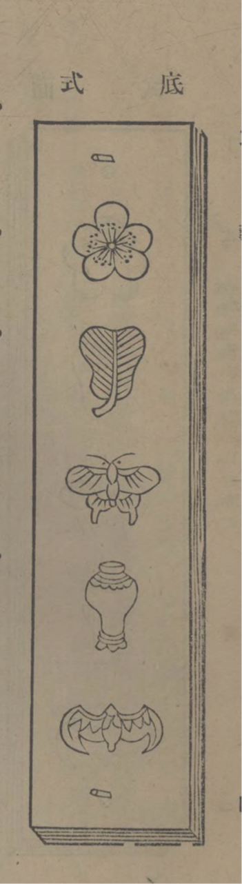 1915年《女子世界》中介紹了精制桂花糖的制作工藝,此為模具。從稿圖中可以看見有梅花、綠葉、蝴蝶、寶瓶、蝙蝠等樣式。