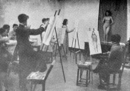 20世紀(jì)30年代,蘇州美專學(xué)生在教室內(nèi)練習(xí)素描