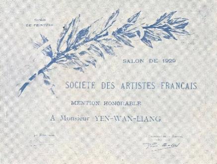 1929年,法國春季沙龍授予顏文樑榮譽獎證書