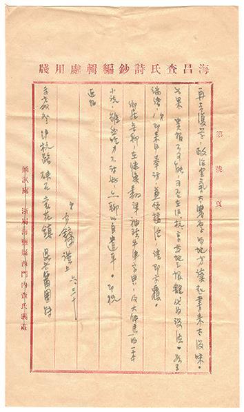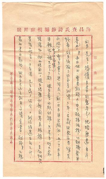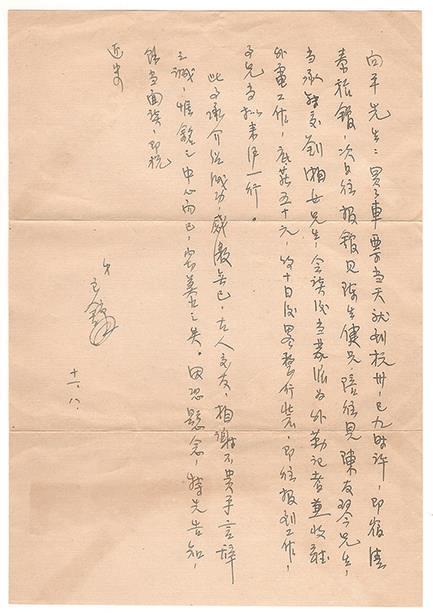 接獲來書,欣慰無已,把晤匪遙,良可喜也。弟至內(nèi)地后,曾考取聯(lián)大、中大、政校諸校,以政校費(fèi)用較省,故在該校之外交系就讀三年,去歲因應(yīng)考譯員而休學(xué),曾在重慶與諸友人創(chuàng)一太平洋出版社,辦一個(gè)太平洋雜志(由弟任編輯),雖只出了三期,現(xiàn)在看看也頗幼稚,只是當(dāng)時(shí)大家情緒好,倒也很開心?,F(xiàn)在很想到新聞界來服務(wù),未知能加入貴報(bào)工作否,可否請(qǐng)先生鼎力紹介。職位待遇在所不計(jì),最好是內(nèi)勤的,因?yàn)榘滋爝€有利用多讀點(diǎn)書,政校弟不想再去復(fù)學(xué),政治空氣太濃厚的地方讀起書來太沒味。如果貴報(bào)不可能,可否在滬、杭、京等地之報(bào)館代為設(shè)法。如有端緒,弟即來滬奉訪,兼便接洽,請(qǐng)即示復(fù)。