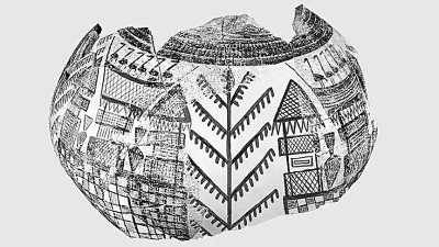 哈拉夫文化陶器上的生命之樹(shù)與房屋 資料圖片