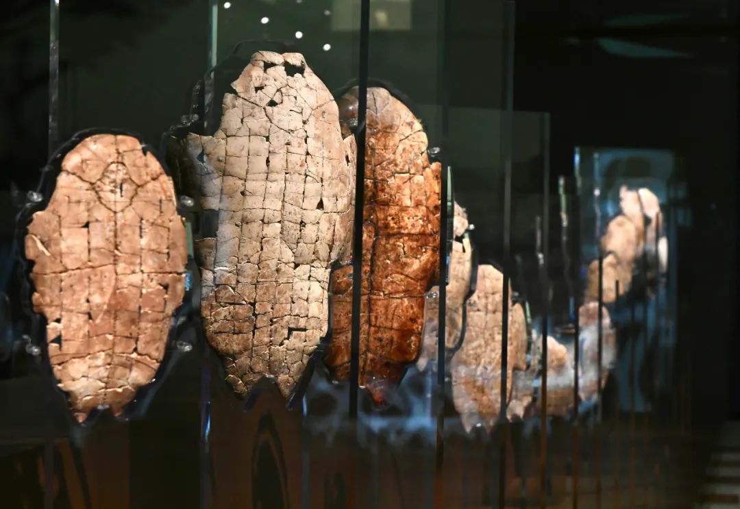 在河南的殷墟博物館新館拍攝的考古發(fā)掘出土的甲骨文骨片 圖源:新華社