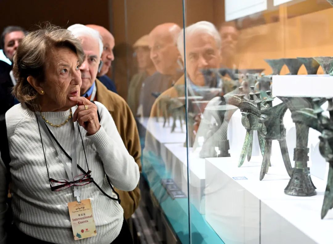 11月3日至5日,“世界古典學大會·走讀中國之中原行”活動在河南省舉行。圖為外賓在河南省安陽市殷墟博物館參觀 圖源:新華社