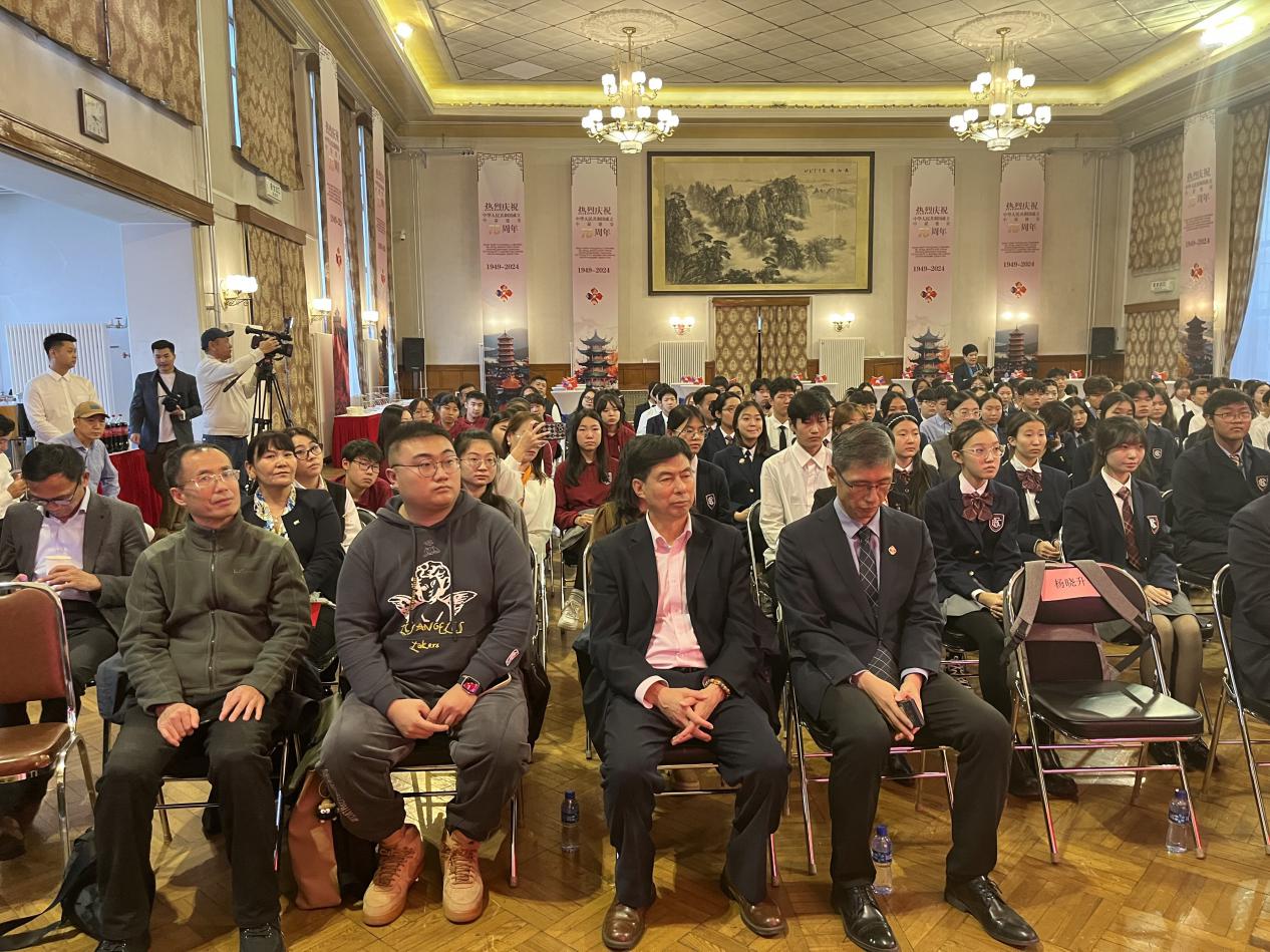 10月25日,中國作家一行受邀來到中國駐蒙古國大使館,參加“慶祝中蒙建交75周年中國大使館開放日活動”,參觀“中蒙建交75周年友誼展和新中國成立75周年主題展”,并與來自烏蘭巴托多所學(xué)校的400多名學(xué)生代表共同交流。