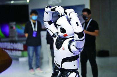 觀眾在參觀第七屆世界聲博會(huì)上的一款文藝創(chuàng)作機(jī)器人。新華社記者 傅天攝