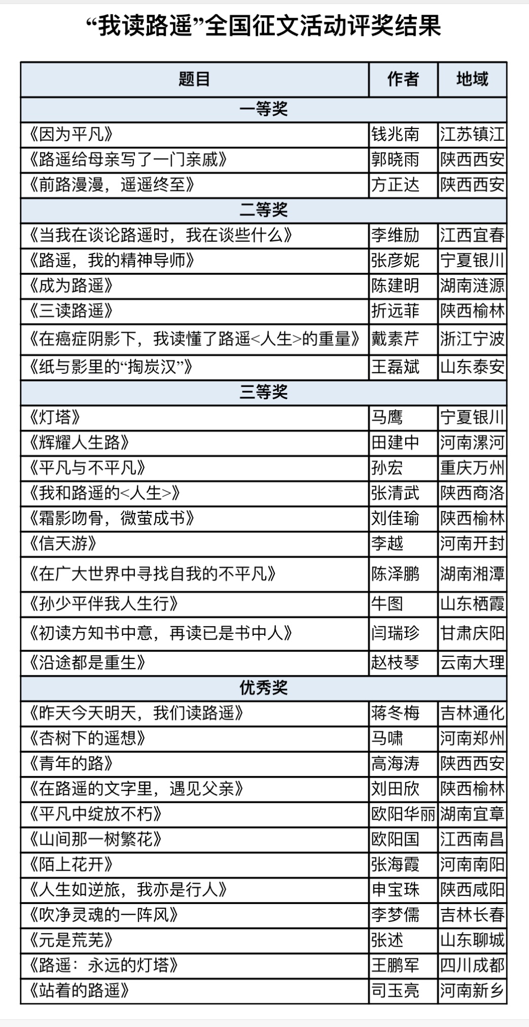 “我讀路遙”全國征文活動自發(fā)布以來,得到廣大作家和文學(xué)愛好者的積極響應(yīng)。這充分展現(xiàn)了路遙作品的強大生命力以及跨越時空的思想價值,再次證明了經(jīng)典作品可以在潛移默化中感染人、引導(dǎo)人、改變?nèi)?。在這次活動中,廣大讀者通過閱讀路遙的作品找到了共鳴,獲得了向上向善的動能,這必將為中國式現(xiàn)代化提供越來越多的精神支撐。
