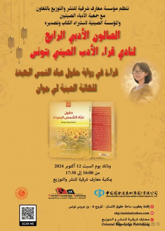 近日,由中國作家協(xié)會外聯(lián)部指導(dǎo)、中國圖書進(jìn)出口(集團(tuán))有限公司和突尼斯東方知識出版社聯(lián)合舉辦的突尼斯“中國文學(xué)讀者俱樂部”活動——李娟《遙遠(yuǎn)的向日葵地》閱讀分享會在突尼斯東方知識書店成功舉辦。
