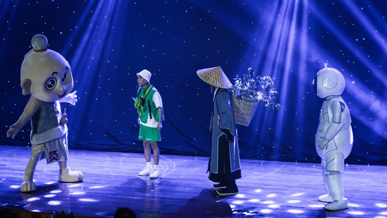 作為特色環(huán)節(jié),啟動儀式上還展演了跨界融合舞臺劇《藥圣》的精編版,講述了灸童帶著小男孩豆豆和機器人叨叨與穿越而來的明代著名醫(yī)藥學(xué)家李時珍進行互動,了解《本草綱目》的編寫歷程和偉大貢獻的故事。這是國內(nèi)首部利用裸眼3D等數(shù)字技術(shù)將動漫元素緊密結(jié)合的中醫(yī)藥主題舞臺劇,融合了歌舞、武術(shù)等表演元素,打造出身心共融的全景式、沉浸式觀劇體驗。
