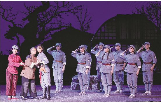 從對(duì)人物情感的表達(dá)來(lái)看,劇作用了相當(dāng)篇幅書(shū)寫(xiě)圍繞在李林身邊的各種感情:從少小離家時(shí)的依依不舍,到犧牲前夕的遙遙牽掛,寫(xiě)出了她和父母間的血脈親情,凸顯了她僑女的特殊身份;還有她與戰(zhàn)友間的革命友情以及她與百姓間的魚(yú)水深情。在大虎不幸犧牲之后,李林和大虎母親劉大娘之間有一段感人的情節(jié)安排,一方面寫(xiě)她對(duì)自己草率帶兵的自責(zé)和反思,一方面寫(xiě)劉大娘在喪子之痛中依然給予她寬慰和支持。當(dāng)大虎的妹妹二妞毅然決定接過(guò)哥哥的軍帽繼續(xù)戰(zhàn)斗的時(shí)候,軍民之間的那份深深的信任讓人潸然淚下。她和屈健之間的感情是全劇重要的一條感情線。二人從朋友,到有情人,最終結(jié)成了夫妻。他們既是戰(zhàn)友、戀人,也是殘酷戰(zhàn)爭(zhēng)中彼此生命中的一束光。為了戰(zhàn)爭(zhēng)的勝利,當(dāng)他們心照不宣向彼此作最后的告別時(shí),不禁讓人想起“生命誠(chéng)可貴,愛(ài)情價(jià)更高。若為自由故,兩者皆可拋”的革命詩(shī)篇。戰(zhàn)爭(zhēng)無(wú)情人有情,以真情寫(xiě)英雄的敘事視角讓這位有血有肉的女革命者形象躍然于舞臺(tái)之上。