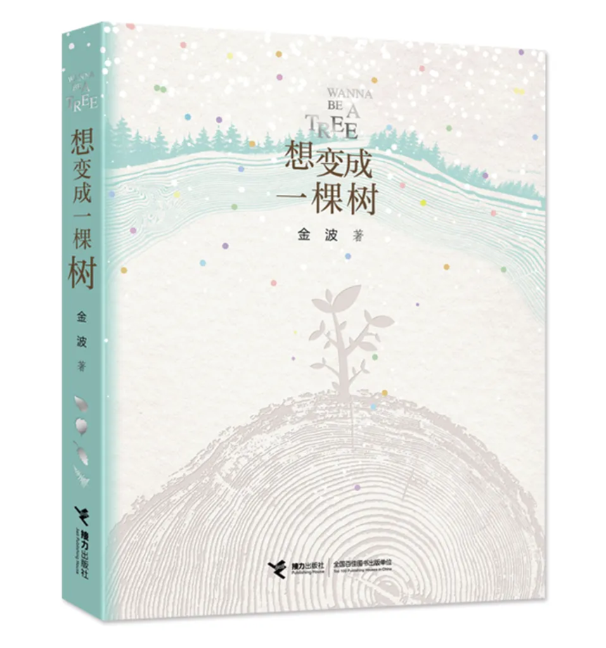 很“樹(shù)”的封面:凹凸有致的外封由樹(shù)的年輪蕩漾開(kāi)去,木質(zhì)感歲月感十足的某一圈年輪萌生出一棵小樹(shù),只有五六根短短的枝條上面幾片小小的葉子,一如耄耋之年的金波靈魂深處的童年。在經(jīng)歷若干“空白”的蕩漾之后,細(xì)密的年輪之外是一片茂密的森林,無(wú)數(shù)絢麗的點(diǎn)點(diǎn)零散地點(diǎn)綴著整個(gè)畫(huà)面:璀璨如星、繽紛如雪、彌漫如思……更似金波與樹(shù)之間的對(duì)話(huà)——WANNA BE A TREE——《想變成一棵樹(shù)》。外封的背面是一片綠色:無(wú)盡的森林——你自然地被融進(jìn)去了,情不自禁地深深吸上一口氣:我也想變成其中的一棵。