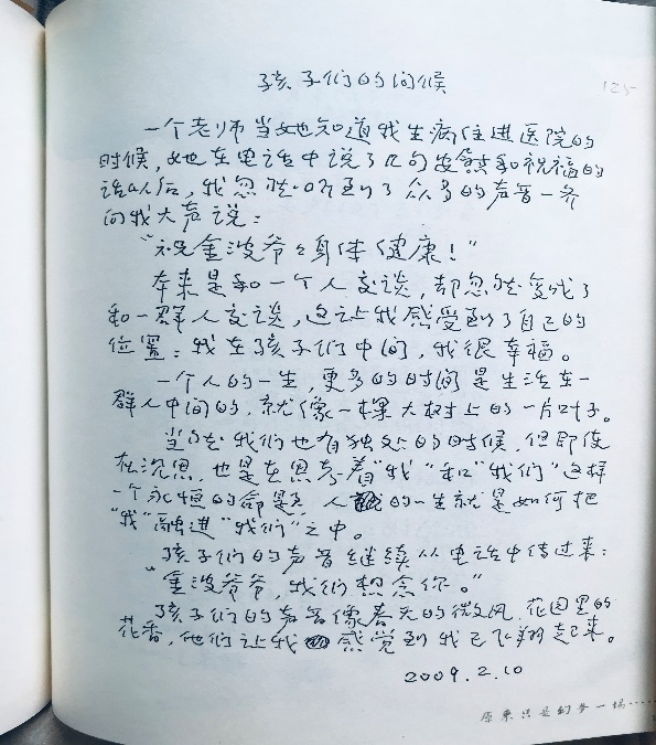 金波有許多作品被入選小學(xué)語(yǔ)文、音樂(lè)教材中,他漸漸地成了在校園里陪伴孩子成長(zhǎng)的樹(shù),枝繁葉茂的他成為孩子們鐘愛(ài)的樹(shù),靈性相通的生命相遇在這片園子。校園,不只是金波引領(lǐng)孩子生長(zhǎng)的地方,也是孩子潤(rùn)澤金波生命的地方。