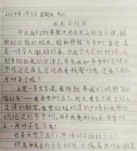 記得三年級(jí)時(shí),有一次要集體去龍山校區(qū)參加活動(dòng),孩子們最熱切的依然是要去看看楓楊樹(shù)。