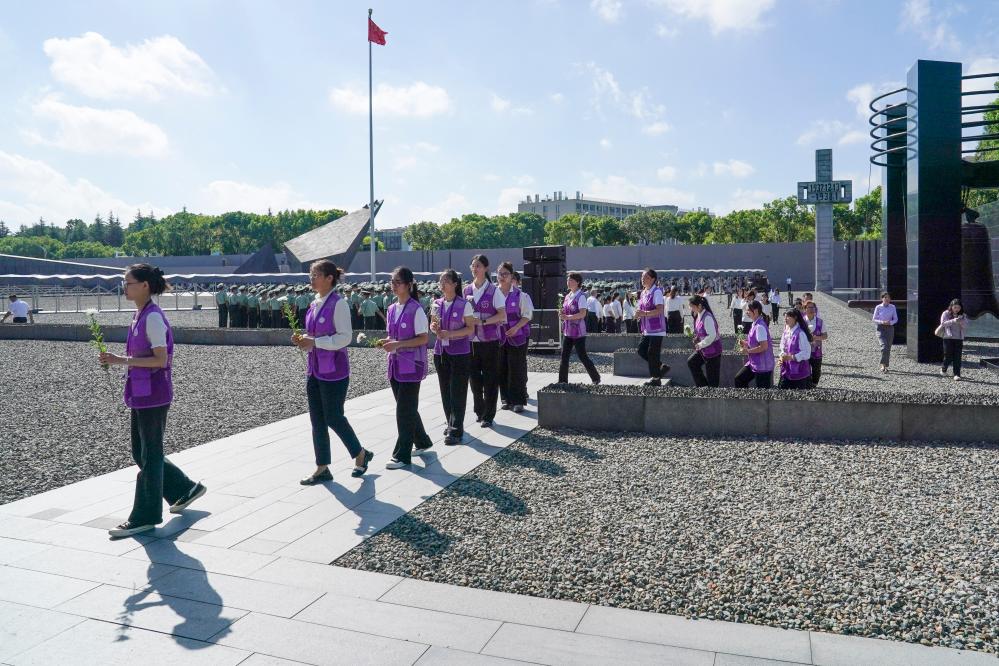 2024年9月18日,在侵華日軍南京大屠殺遇難同胞紀念館,社會各界代表排隊獻花。 新華社記者 李博 攝