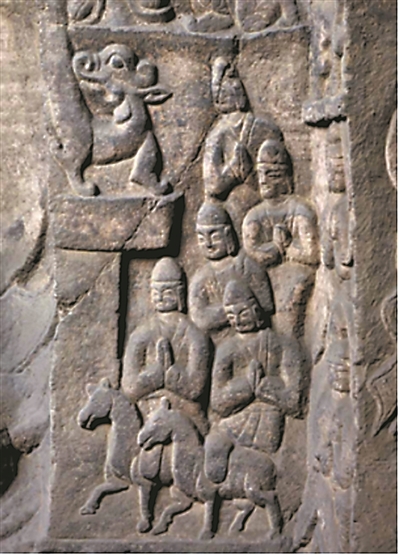 在西域諸國中,粟特人以善于經(jīng)商聞名。粟特位于中亞阿姆河和錫爾河之間的澤拉夫珊河流域,大約在今烏茲別克斯坦境內(nèi),地處歐亞大陸交通樞紐。得天獨(dú)厚的地理優(yōu)勢,令粟特人成為絲綢之路上的重要貿(mào)易者,推動中原與西域交流互動。十六國以來,粟特商人曾活躍在涼州(今甘肅武威)一帶。太延五年(公元439年)北魏太武帝平定北涼后,粟特商人及親屬隨民眾一起遷至平城(今山西大同)。從商人的形象及文獻(xiàn)中對粟特人善于經(jīng)商的記載來看,這支商隊(duì)或許便來自粟特。