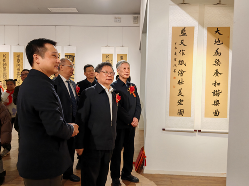 12月13日,由民進(jìn)湖南省委員會(huì)、民進(jìn)長(zhǎng)沙市委員會(huì)、長(zhǎng)沙縣文化旅游廣電體育局主辦,民進(jìn)中央開明畫院支持的“遵道而行 同心向黨”——慶祝中華人民共和國(guó)成立75周年詹習(xí)成師生書法展在北京民進(jìn)中央開明美術(shù)館舉辦。民進(jìn)中央副主席高友東出席并宣布書法展開幕,湖南省政協(xié)副主席、民進(jìn)湖南省委會(huì)主委潘碧靈,長(zhǎng)沙市人大常委會(huì)副主任、民進(jìn)長(zhǎng)沙市委會(huì)主委李平分別致辭。