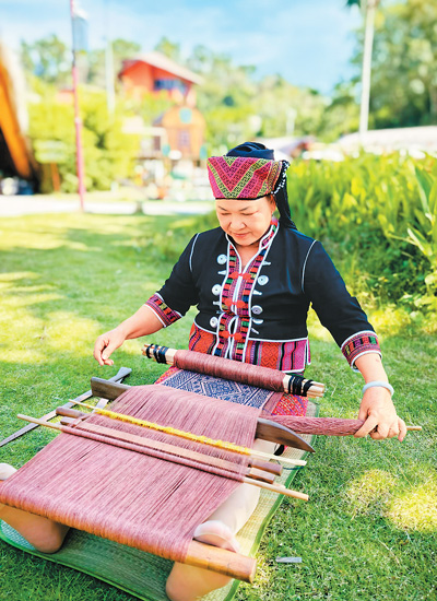 2021年,陳孟麗以五指山的云霧、桫欏樹、空中花園等為靈感,設(shè)計出35套黎錦服飾,在海南島國際時裝周上展示,令人眼前一亮。她創(chuàng)辦的企業(yè)為農(nóng)村婦女提供訂單、增加收入,并成為海南省科普教育基地,接待學(xué)生開展研學(xué)活動。