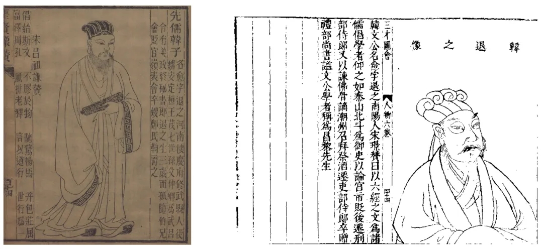 左圖為圖三:韓愈(取自明代呂維祺《圣賢像贊》);右圖為圖四:韓愈(取自明代王圻《三才圖會(huì)》)