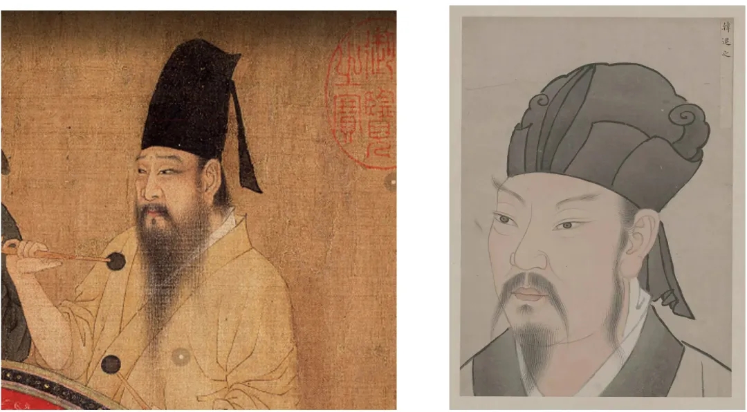 左圖為圖一:韓熙載(取自《韓熙載夜宴圖》局部);右圖為圖二:韓愈(取自故宮南薰殿舊藏《圣賢畫(huà)冊(cè)》)